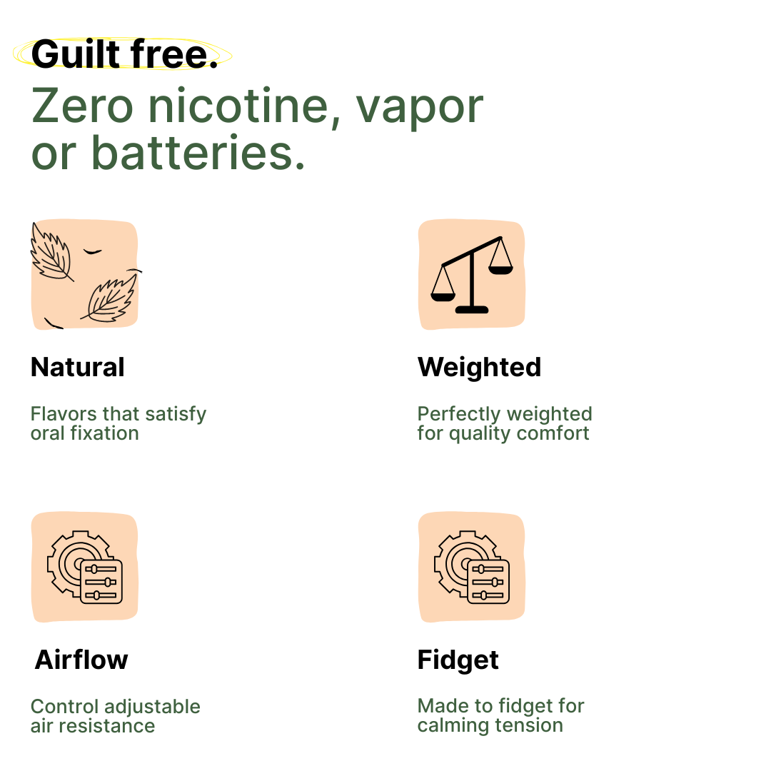 Since it’s air-powered, there’s no liquid, coil, or battery to burn out. AeroVive is reusable and built to last — you’re not constantly buying refills like with vapes.
