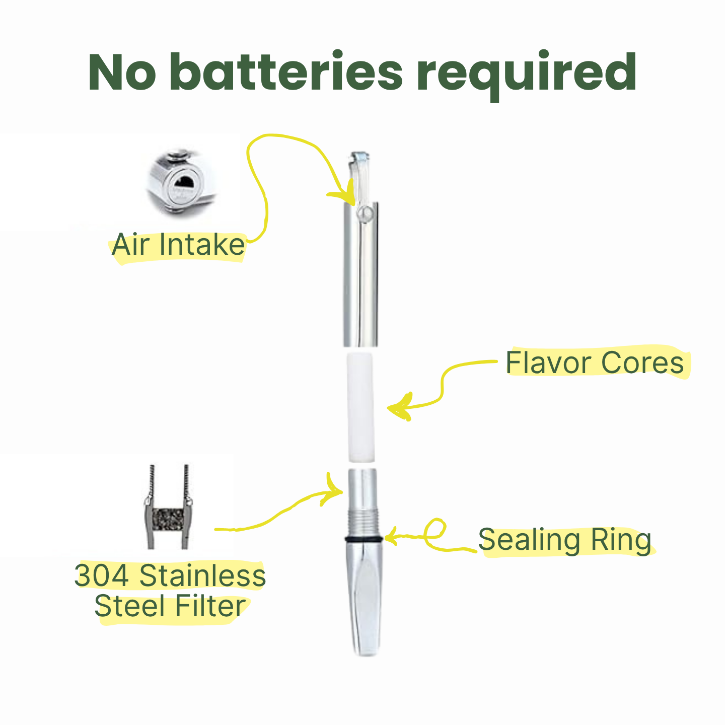 Yes. Our Flavor Cores use plant-based ingredients infused into a medical-grade fiber. They contain no nicotine, vapor, or harmful chemicals — only clean air and natural botanical essences.